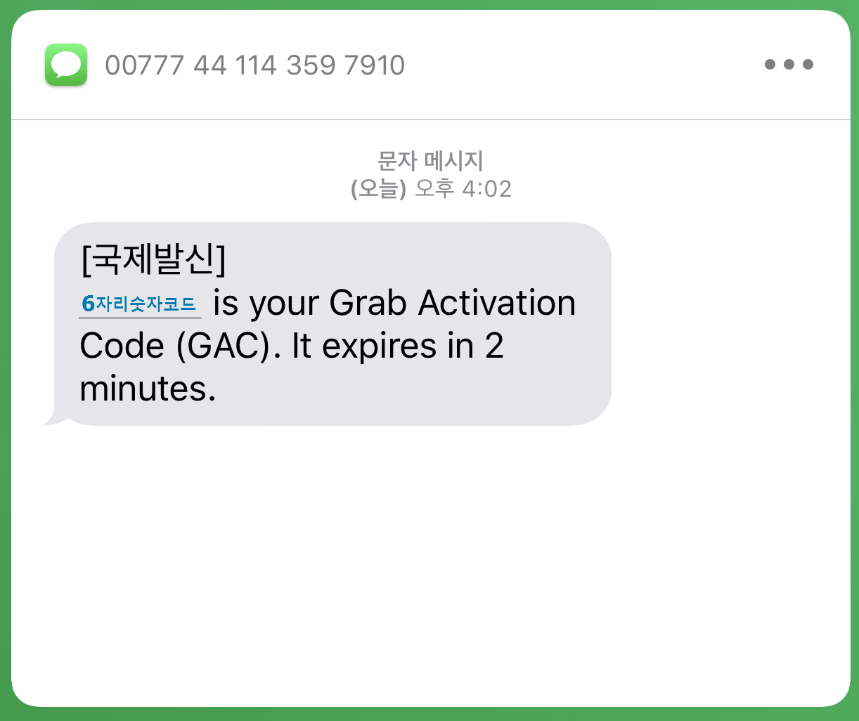 SMS로 오는 인증코드는 위와 같은 형식으로 발송되니 참고하자.
