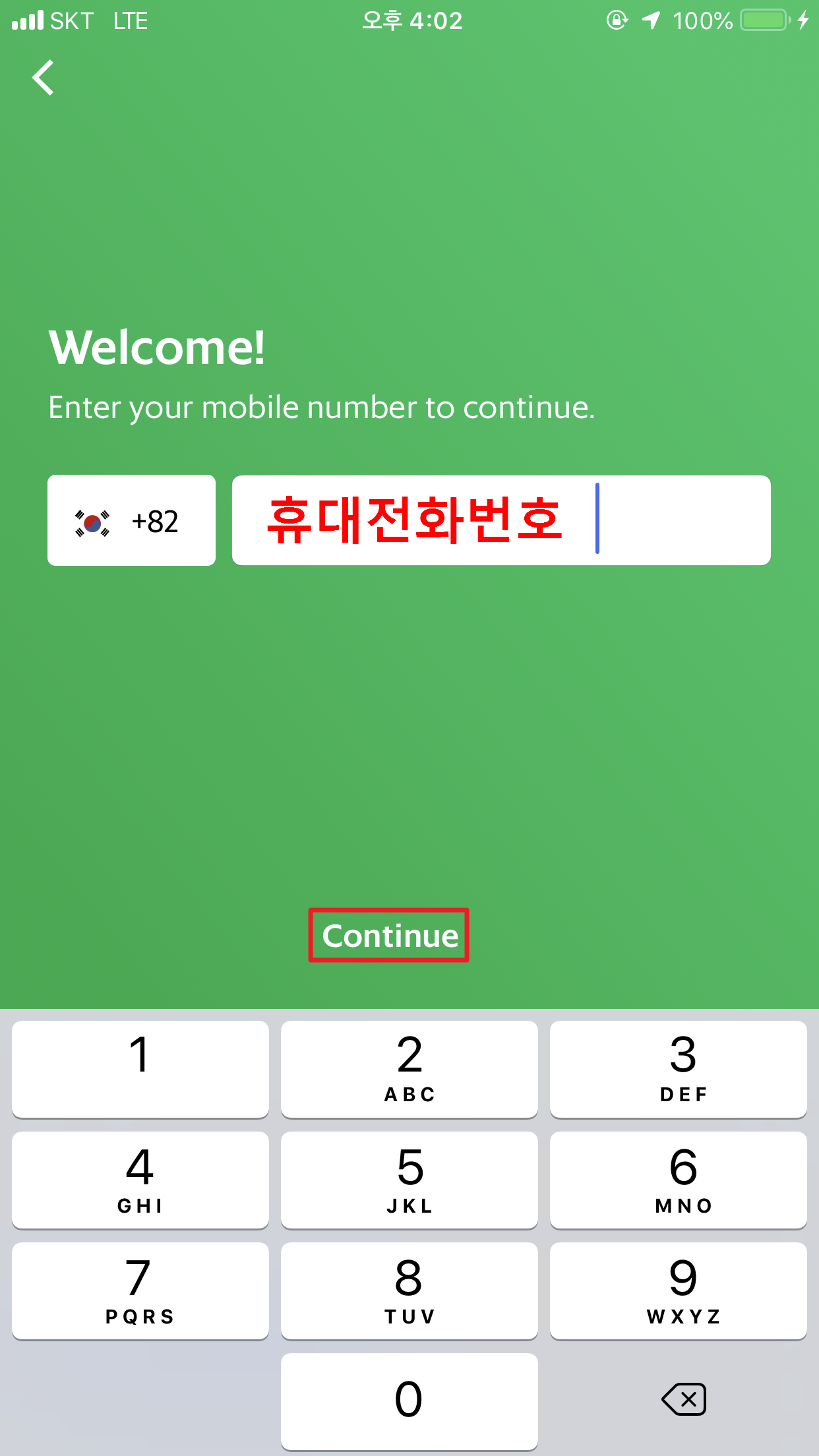 다운로드 받아 실행하면 아래와 같이 전화번호 인증을 받아야 한다.