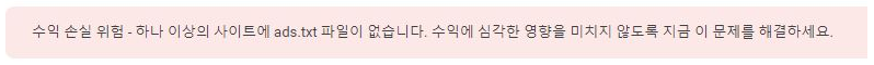 그러던 중 구글 애드센스에서 갑자기 ads.txt를 찾을 수 없다는 경고창이 떴다.