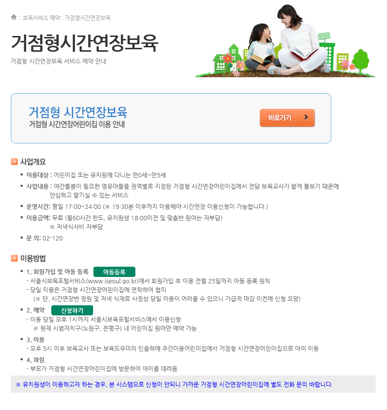 서울특별시 보육포털서비스의 거점형 시간연장보육에 대해 알아보자. 본문