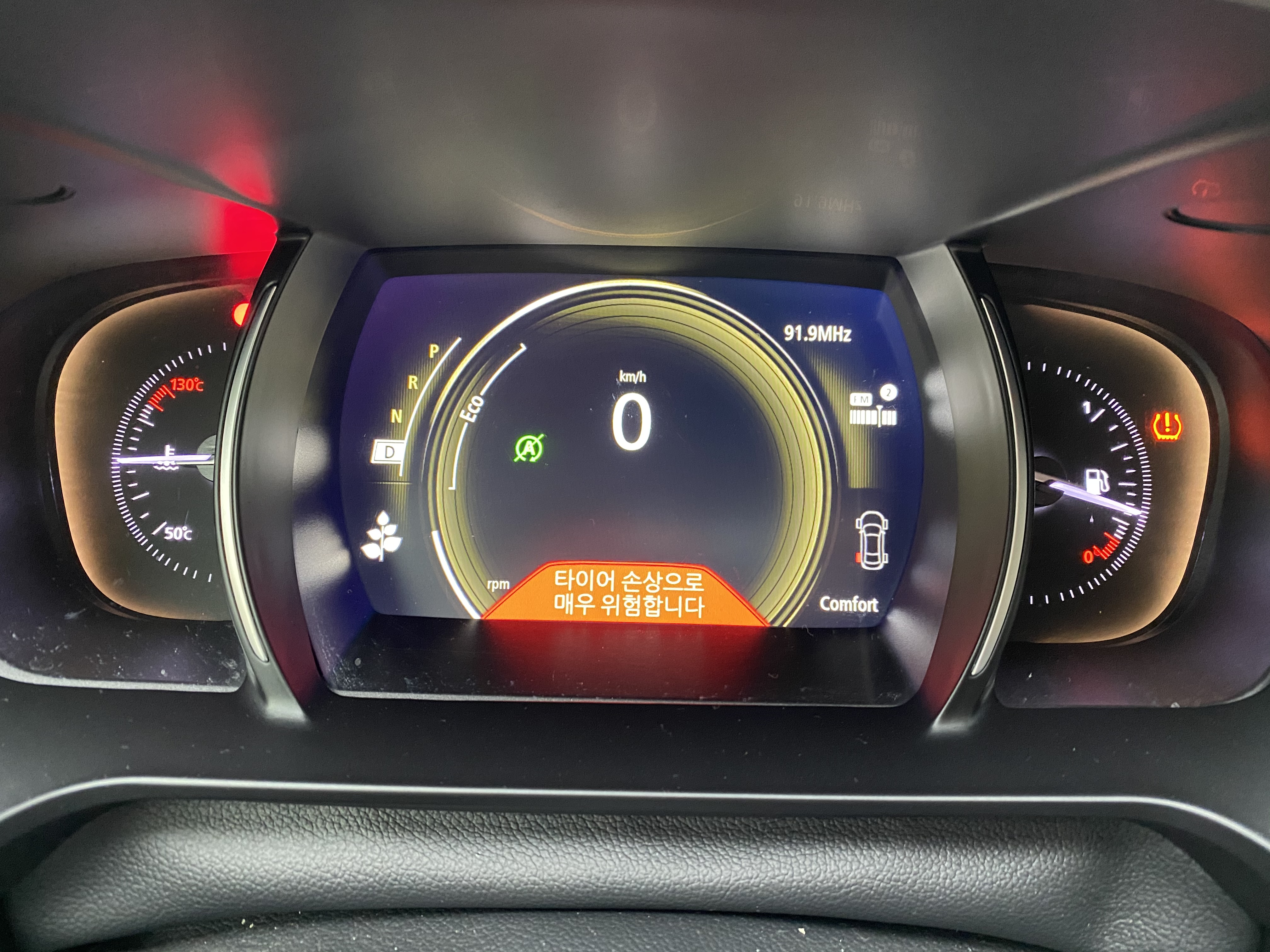 아침에 아이 어린이집 데려다주려고 차에 타니 경고음 작렬.