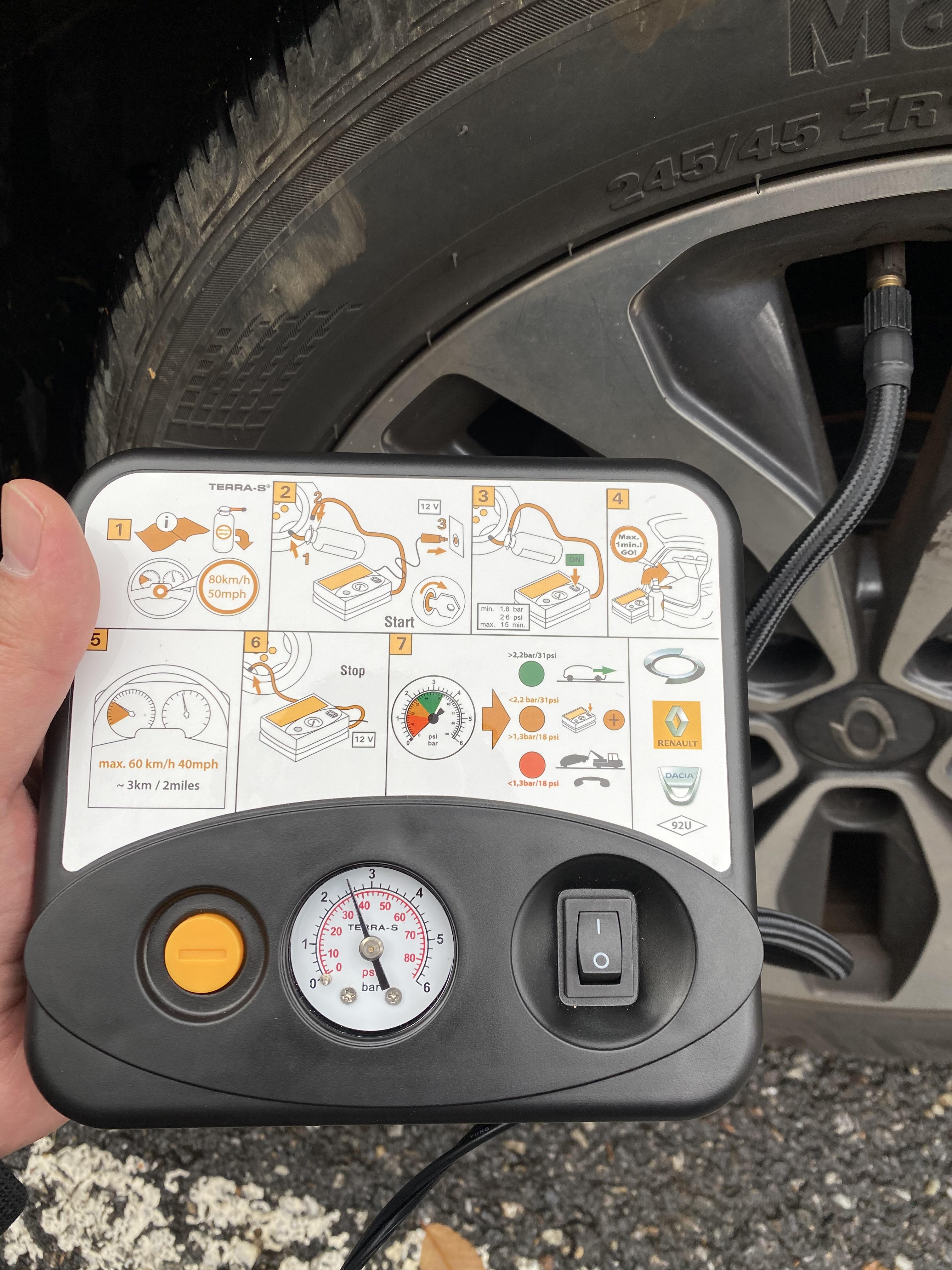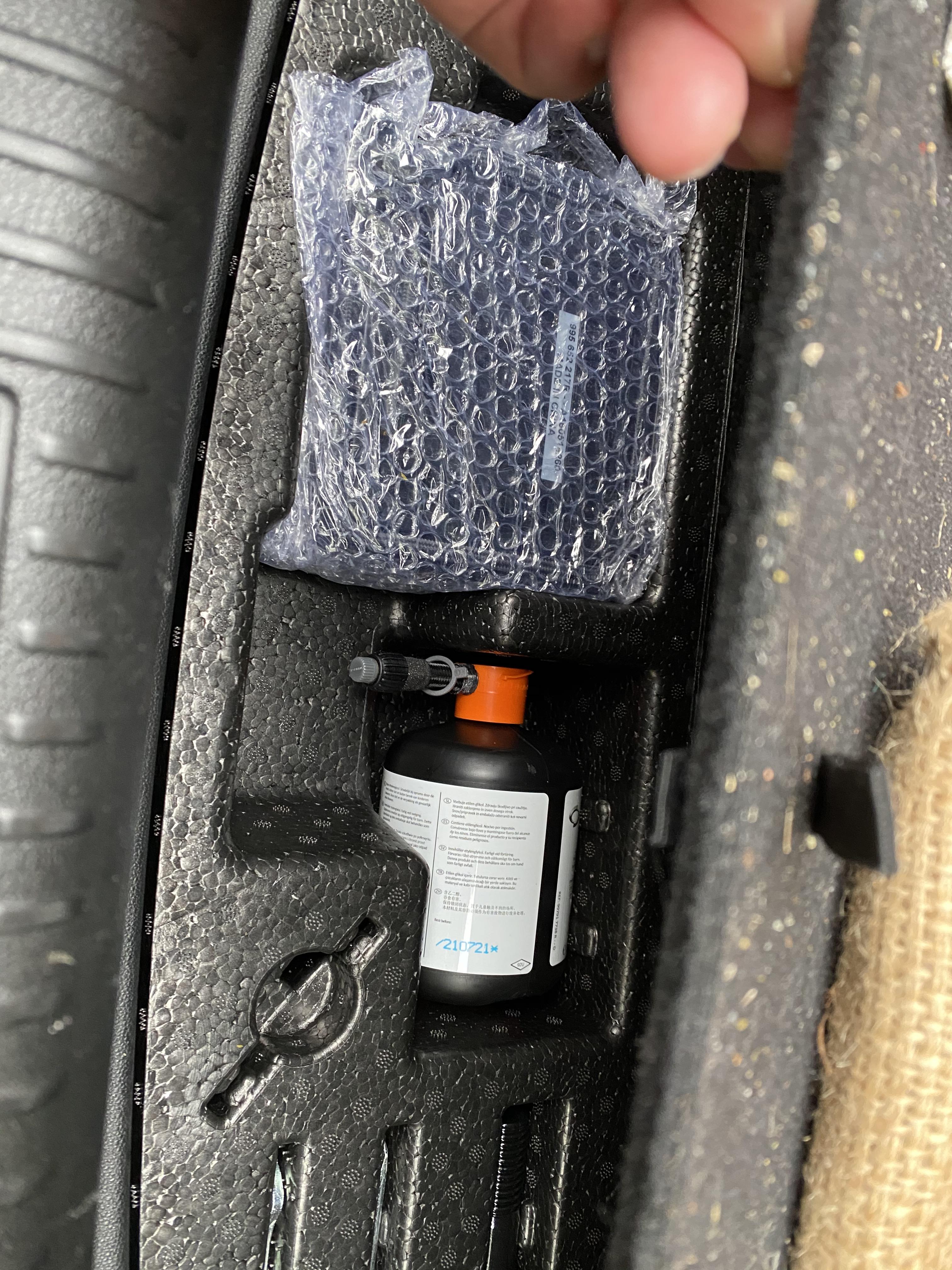 우선 애를 어린이집에 데려다 줘야 하기 때문에 트렁크에 기본적으로 들어있는 타이어 공기 넣는 장비를 꺼낸다..
