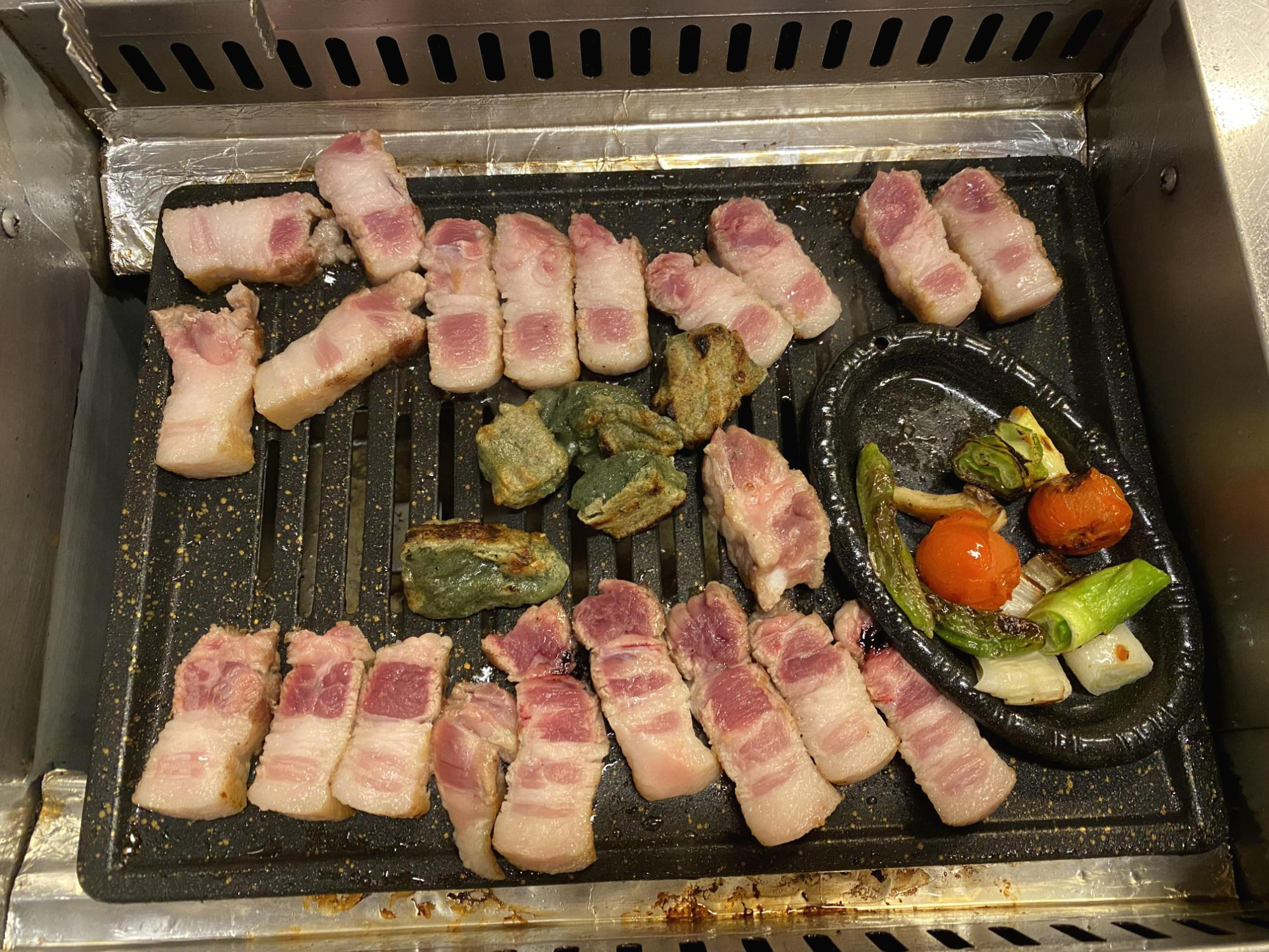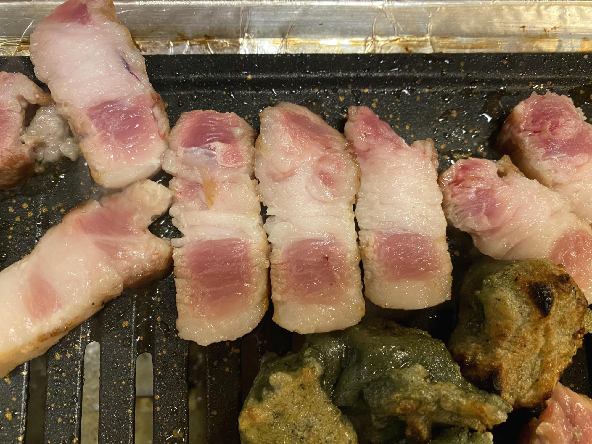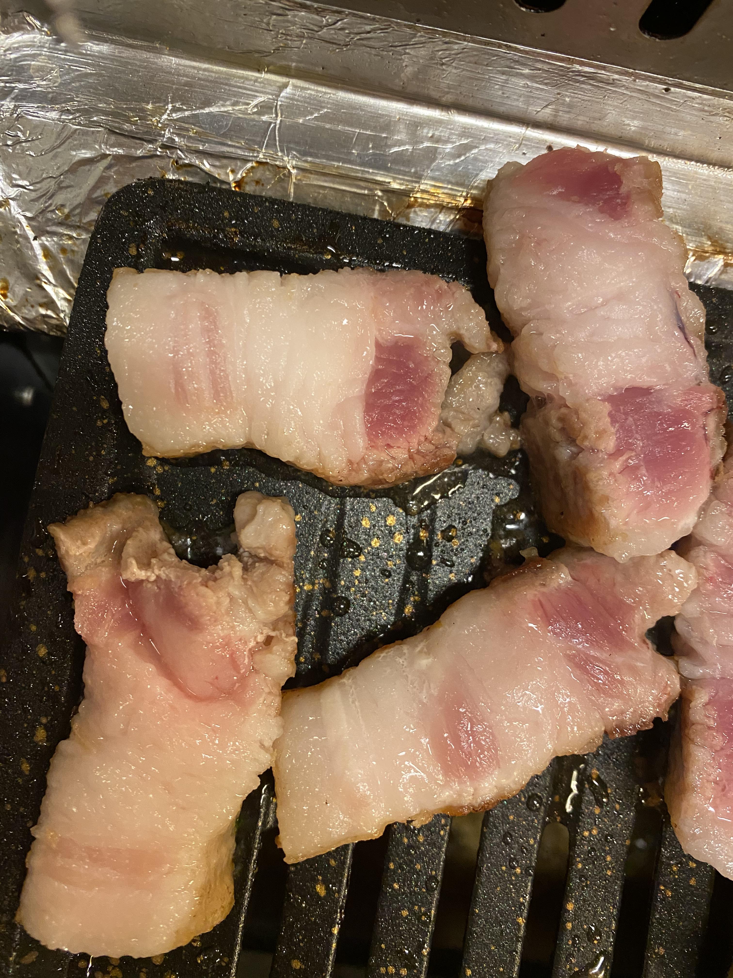 전체적으로 심했는데 특히 윗줄 삼겹살은 이건 뭐 돈주고 먹기 너무한 정도다.
