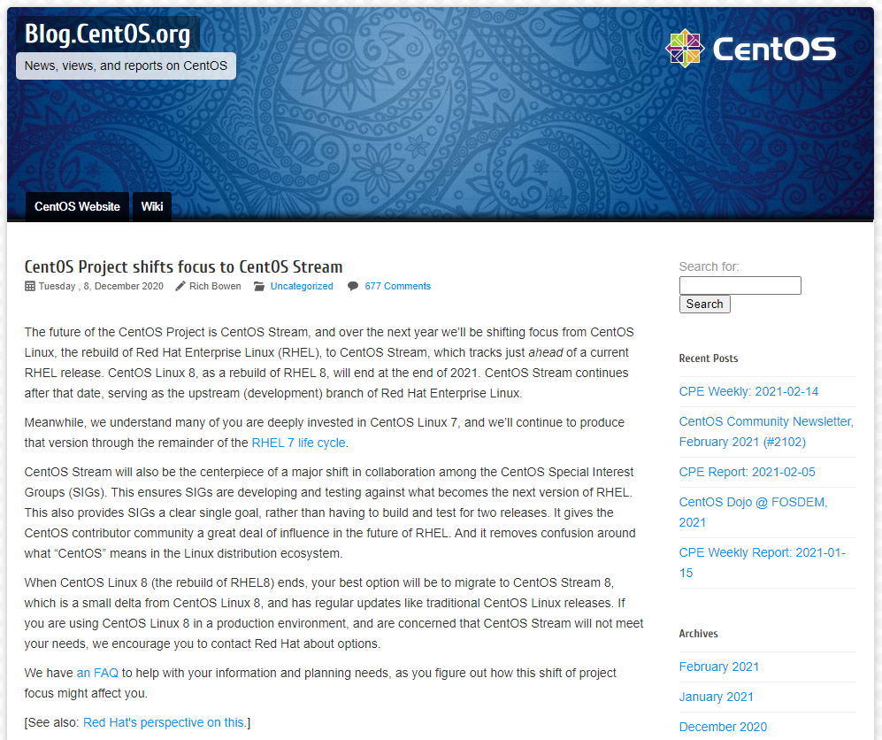 CentOS 8 지원 종료, CentOS Stream으로 전환? 대체제는? 본문