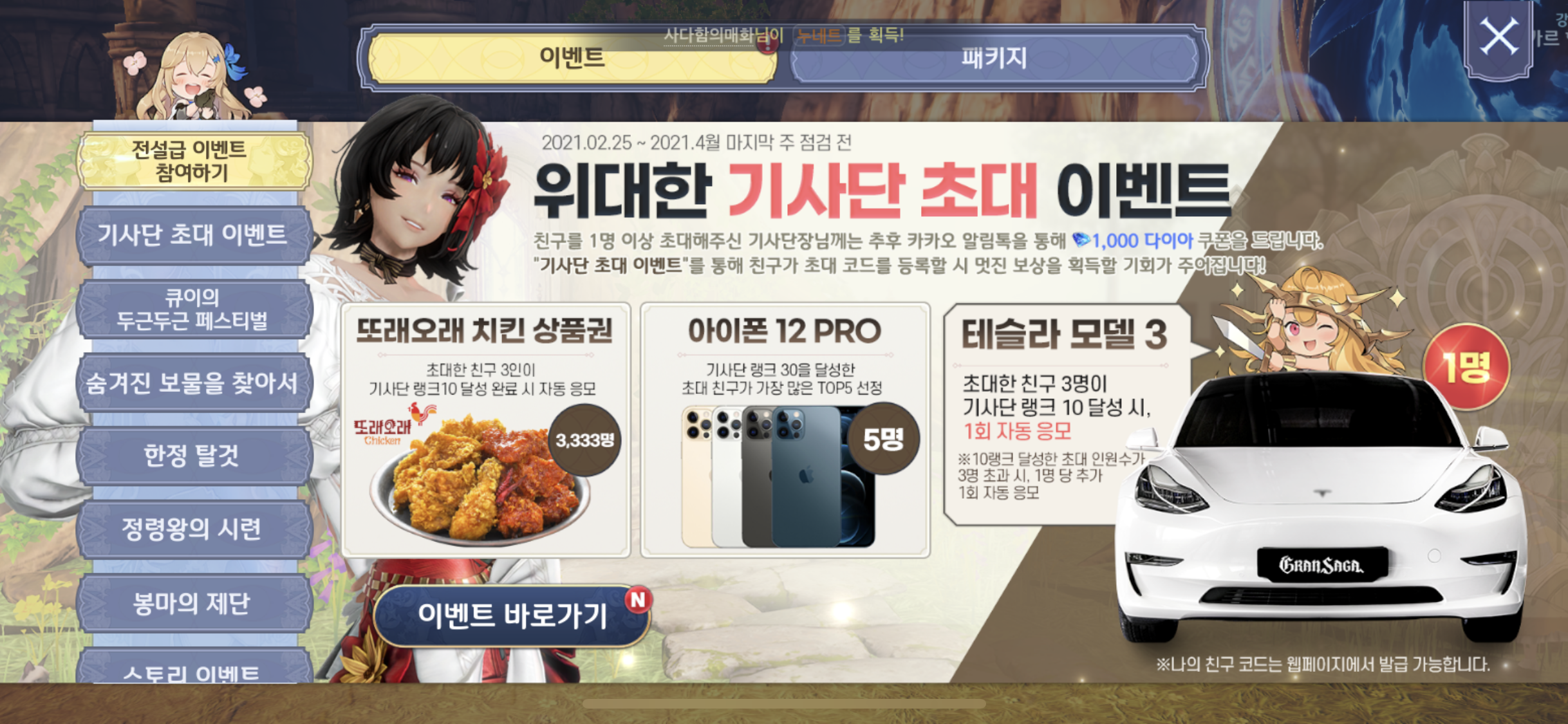 그랑사가 이벤트!! 친구 초대하고 테슬라 받자~~!! 본문