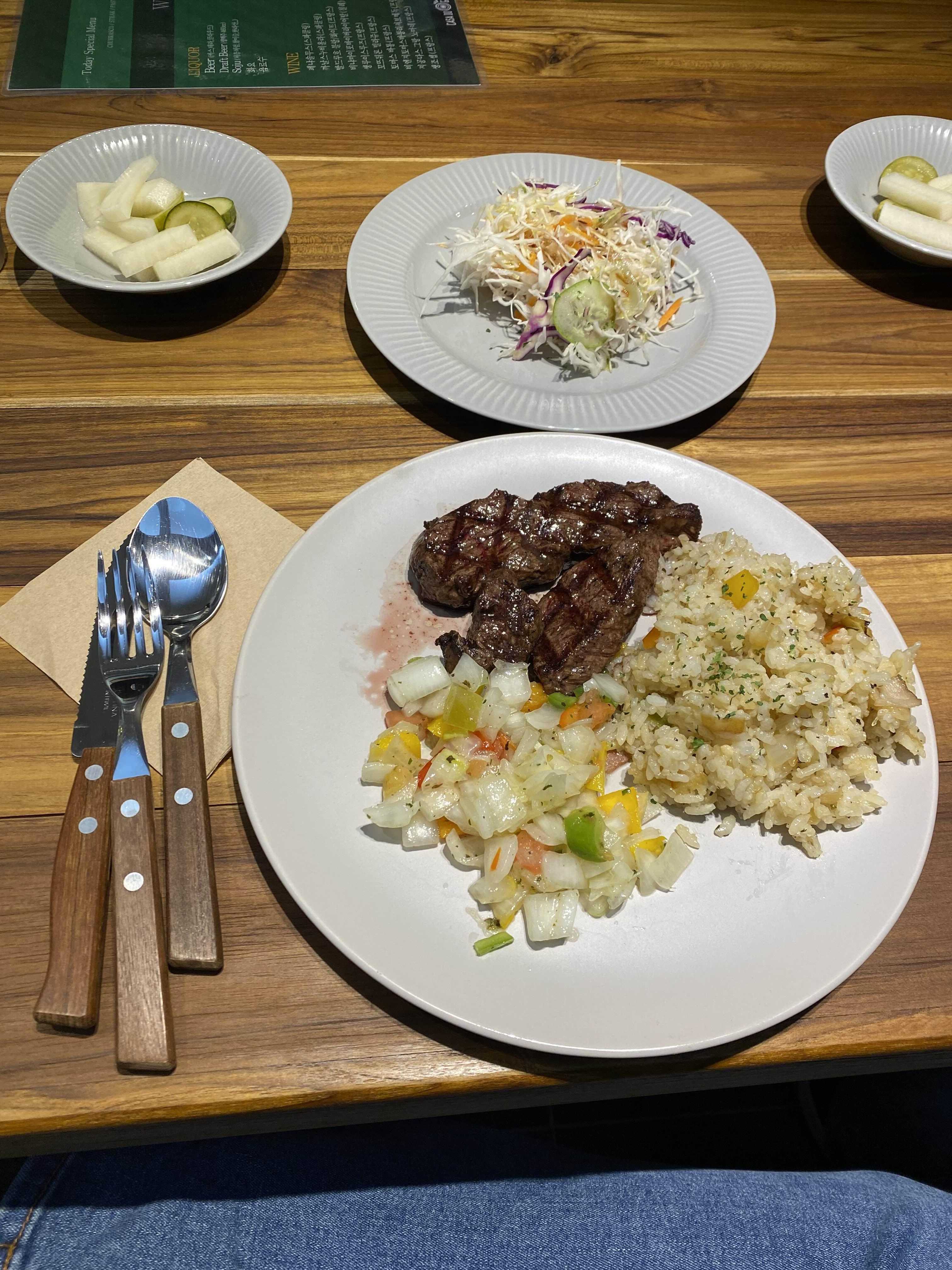 서초 법원 앞에 원래 백반집이 있던 자리에 스테이크집이 생겼다.